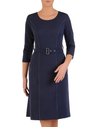 Elegancka granatowa sukienka z przeszyciami 28396