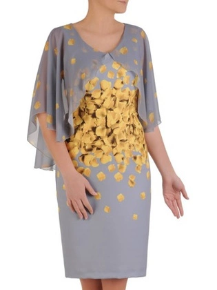 Sukienka damska, wyjściowa kreacja w modnym fasonie z ozdobną narzutą 25577