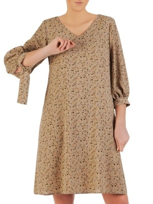 Luźna sukienka o trapezowym kroju, modna kreacja z wiązaniami na rękawach 25039