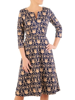 Sukienka z tkaniny, luźna kreacja w oryginalne wzory 20474.