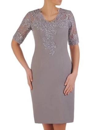 Sukienka z prześwitującym karczkiem 14166, elegancka kreacja wykończona siateczką