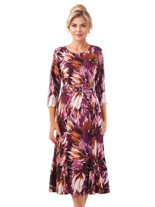 Śliwkowa sukienka w wyszczuplającym fasonie 27482