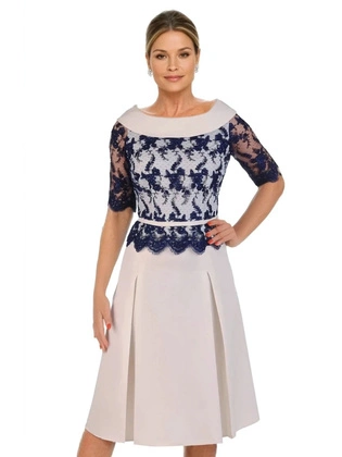 Aksamitna sukienka z koronkowymi wstawkami na ramionach 34830