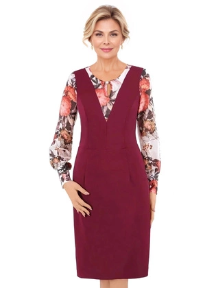 Elegancka sukienka wyszczuplająca, kreacja wyjściowa z ozdobnymi wstawkami 34351