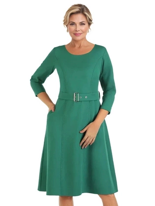 Elegancka zielona sukienka z przeszyciami 28397