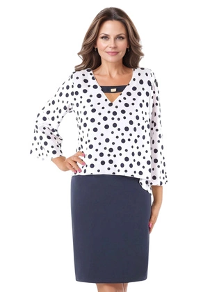 Komplet damski z szyfonową, asymetryczną bluzką 28612