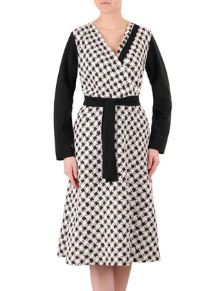 Nowoczesna sukienka wiązana w pasie, kreacja na jesień 34017