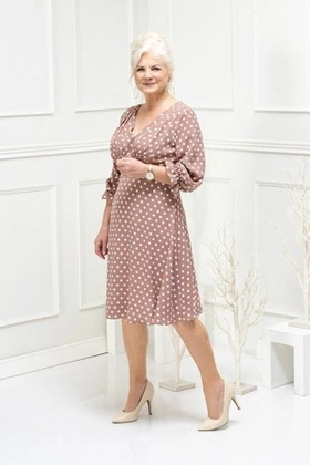 Sukienka damska plus size z długim rękawem, zwiewna kreacja w oryginalnym wzorze 28073