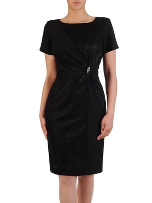 Sukienka wykończona koronką 15225, kreacja z modnym dekoltem.