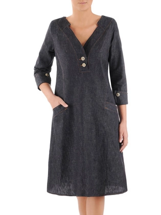 Sukienka jeansowa plus size, bawełniana sukienka z kieszeniami 38752