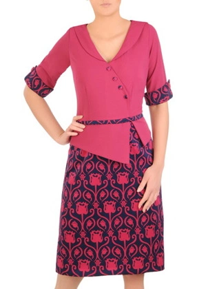 Sukienka damska z baskinką i wzorzystą spódnicą 32455