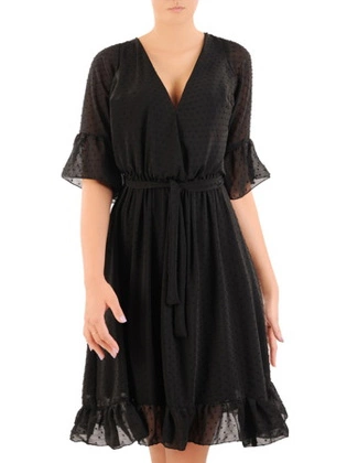 Szyfonowa sukienka z kopertowym dekoltem i falbankami 30397
