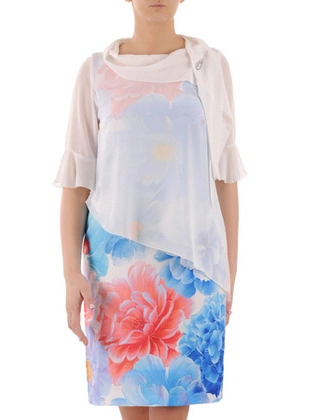 Sukienka z szyfonu, luźna kreacja w kwiaty 33749