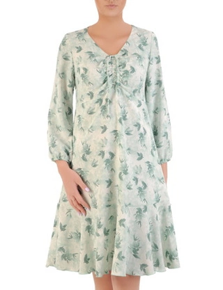 Wizytowa sukienka z wiązanym dekoltem i gumkami na rękawach 27484