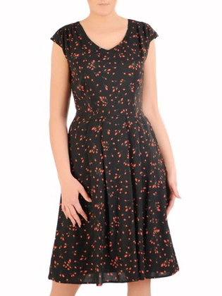 Rozkloszowana sukienka w roślinny deseń, kreacja z plisami 32894