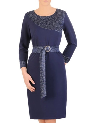 Wieczorowa sukienka z paskiem, kreacja z połyskującymi wstawkami 31899