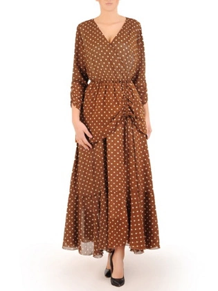 Kopertowa sukienka maxi, kreacja z ozdobną baskinką 31041