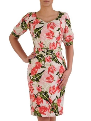 Wiosenna sukienka z paskiem, elegancka kreacja w piękne kwiaty 20150