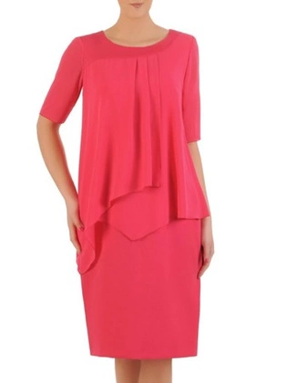 Wyszczuplająca sukienka z kopertowym i ozdobnie wyciętym dekoltem 34676