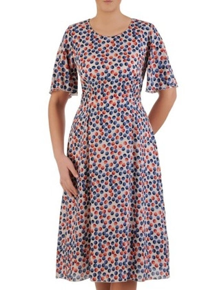 Sukienka z tkaniny, rozkloszowana kreacja w kolorowe grochy 25033