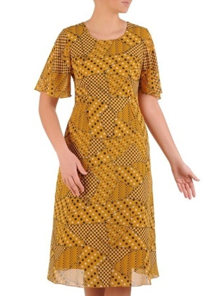 Sukienka w wyszczuplającym fasonie, modna kreacja z kołnierzem 27187