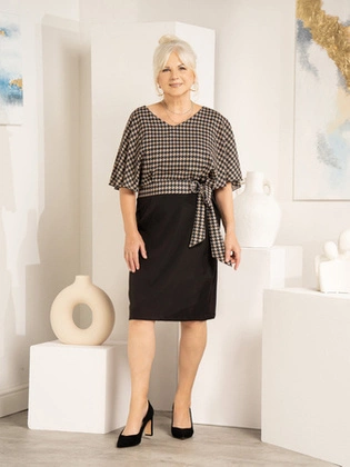 Wizytowa sukienka damska z luźnym topem w pepitkę 33893