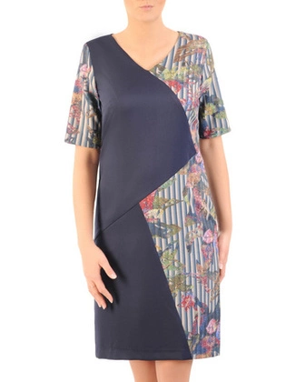 Chabrowa sukienka damska z wzorzystymi wstawkami 32669