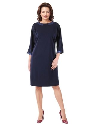 Trapezowa sukienka z szyfonu, kreacja z perełkami na rękawach 32646