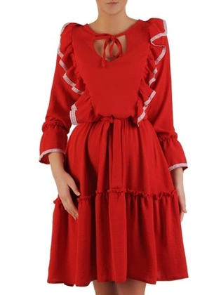 Wyszczuplająca sukienka z modnymi falbanami 24171