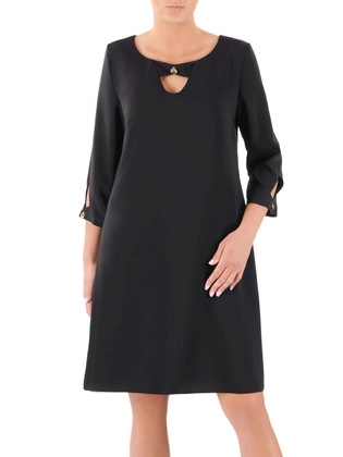 Elegancka sukienka z kołnierzykiem, kreacja z ozdobnie wyciętym dekoltem 36790