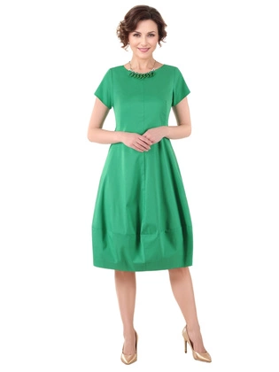 Zielona sukienka z tkaniny, kreacja z ozdobnymi kieszeniami 23163