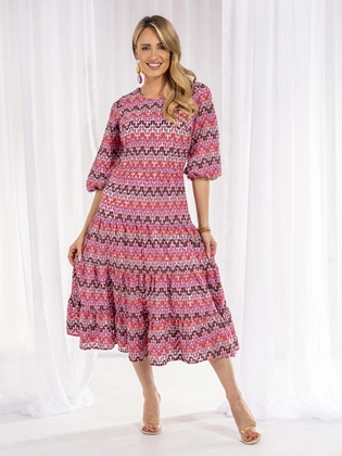 Trapezowa sukienka damska, wiosenna kreacja w oryginalny wzór 35937