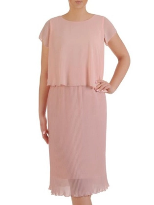 Plisowana sukienka z luźną narzutką, pudrowa kreacja w zwiewnym fasonie 19730