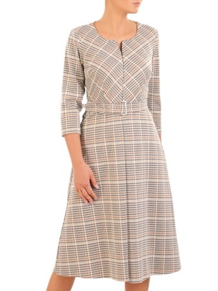 Bawełniana sukienka w kratkę, kreacja z zamkiem na dekolcie 30534