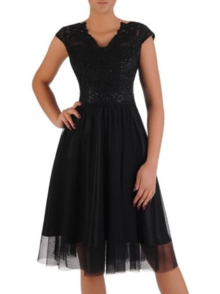 Sukienka damska 17985, czarna kreacja z koronki i tiulu