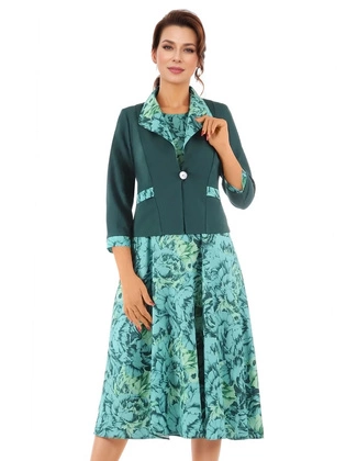 Komplet damski na komunię, wesele wzorzysta sukienka z żakietem 35482