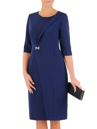 Elegancka granatowa sukienka, kreacja z ozdobnie wyciętym przodem 27177