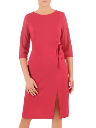 Dzianinowa sukienka z ozdobnym wiązaniem i rękawami z szyfonu 36642