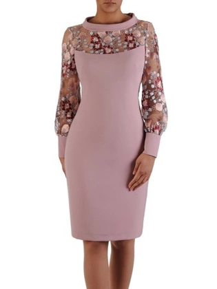 Sukienka damska 16571, elegancka kreacja z ozdobnym karczkiem i rękawami.
