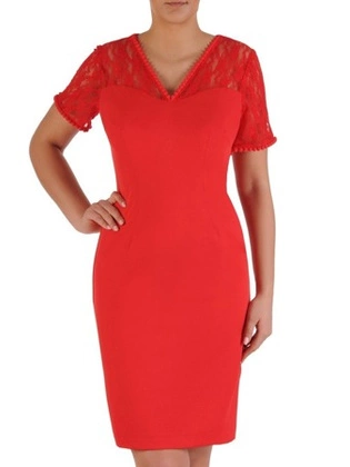 Sukienka wyjściowa, czerwona kreacja z ozdobnym dekoltem 20043.