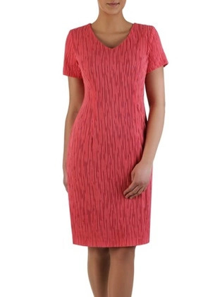 Sukienka wysmuklająca sylwetkę Kornelia IV, koralowa kreacja z kreszowanej dzianiny.