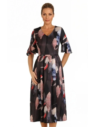 Sukienka z rozszerzanymi rękawami, czarna kreacja wyszczuplająca 19757