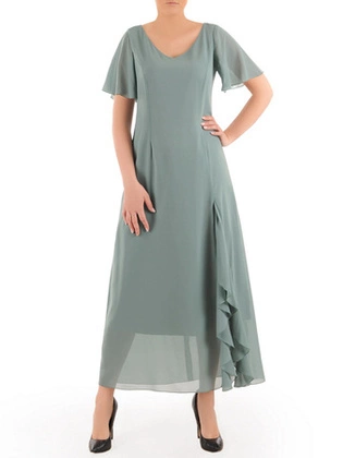 Maksi sukienka z szyfonu z ozdobną falbaną 35438