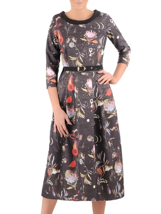 Elegancka sukienka o oryginalnym wzorze, kreacja maskująca niedoskonałości 35298