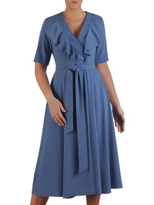 Rozkloszowana sukienka z kopertowym dekoltem i wiązaniem w pasie 24689
