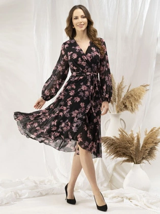 Sukienka z szyfonu 19721, zwiewna kreacja w kobiecym fasonie.