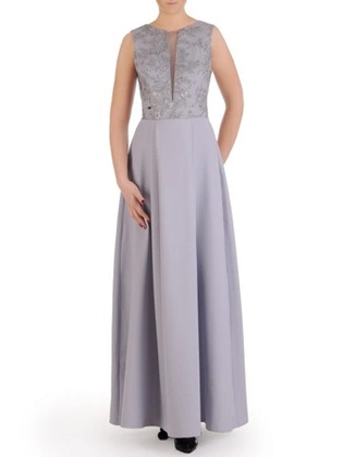 Długa sukienka na wesele, rozkloszowana kreacja z koronkowym topem 19402