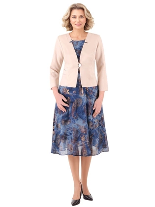 Elegancki komplet damski na wesele, komunię – żakiet z rozkloszowaną sukienką, stylowy i szykowny zestaw 39647