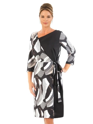 Sukienka z łączonych materiałów, kreacja z modnym wiązaniem 32360