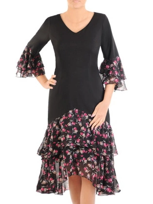 Sukienka z szyfonu, luźna kreacja w kwiaty 29815